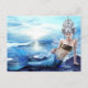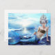 Fantasy card with a beautiful mermaid princess sitting on a rock a the ocean.