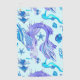 Beautiful, Weird, Purple and Turquoise Fairy Ocean Creature, this Mermaid is Swimmingm and looks like playing, surrounded by Starfishes, sea shells, seaweed, Fishes, and holding a little Seahorse on her hand; all the elements are assembled to compose a Fantasy Pattern. Vector Illustration Copyright BluedarkArt.