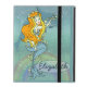 Cute mermaid holding pearls with a dolphin on top of a rainbow with bubbles and glitter. The blue mermaid has bright orange hair with yellow streaks. I made it custom so you can personalise it.