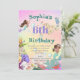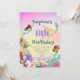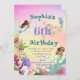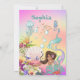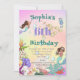 A Mermaid themed personal aged birthday invitation featuring a Mermaid with dark hair and other under the sea creatures.