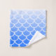 Pretty girl's bath towel set featuring blue mermaid scales. The hand towel is done in white with a cartoon blonde and blue mermaid and blue custom text ready to personalise.