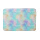 Pretty mermaid scales bath mat in blue and pink pattern with faux glitter.