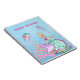 This is an adorable mermaid, seahorse and jellyfish notebook for a girl. This would be perfect as a back-to-school gift which any girl would love to have. This notebook can be personalised by changing the name on it. The image is colourful with the main colours being turquoise, pink and purple.