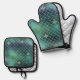 Mermaid Silver Teal Green Ocean Glitz Oven Mitt & Pot Holder Set