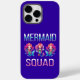 Trio of mermaids with rainbow coloured hair and full tail showing,