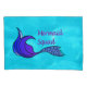 Mermaid Squad purple mermaid tail on a blue pillow case