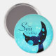 This beautiful magnet features a fantasy whale tail on a sea green bokeh background with a quote that says: "The sea is calling"