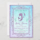 Everything's better under the sea! Our Mermaid invitation is the perfect beginning for creating an under the sea environment with all the sea life and treasures that a mermaid should have. It features a light blue-green under water background with a purple glitter mermaid and additional purple glitter accents. Sure to please the Mummy who loves glitter!