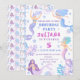 Make a splash with this magical Mermaid 5th Birthday Invitation! Featuring pastel watercolor illustrations of mermaids, coral, and sea stars, this under-the-sea themed design is perfect for your little girl's special day. The dreamy palette of purples, blues, and pinks adds a whimsical touch, while elegant fonts highlight your child's name and birthday details. Personalise it easily with your party info. Ideal for a summer pool party, beach bash, or mermaid-themed celebration!