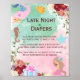 Late Night Diaper Sign/Poster. A watercolor mermaid under the sea theme, celebrate with seahorses and mermaids. late night diaper poster/sign. Easily customise the wordings to make it uniquely yours. Visit our mermaids under the sea collection for matching party goods. Napkins, plates, welcome sign, thank you cards and more.