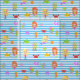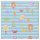 Patterns include mermaids, fish, crabs, starfish, corals and seahorses on blue and white striped background.