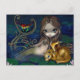 Mermaid with a Golden Dragon- a beautiful, quiet scene of a lovely mermaid in a pond full of lilypads, with her little golden dragon friend. He's getting all cosy on one of the lilypads. My own original acrylic painting.