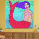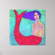 My colourful abstract digital painting of a mermaid with purple hair on wrapped canvas
