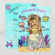 Pretty tan mermaid with brown and pink hair hgihlights floating in the teal water. This is hand drawn by myself and done in a whimscial, brightly coloured folk art type of style. Besides the pretty mermaid there is little fish, turtles, shells and coral ina teal blue background. Just add your daughter's birthday information ni the personalise area.This little mermaid could be African-American or Hispanc. Please let me knwo if their is a hair colour, eye colour or nationality you'd like done for your little girl. <3