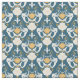Modelled on old damask wallpaper this pattern features illustrations of mermaids and seashells in white and mustard gold set against a dark teal blue background. It's perfect for crafting projects for fans of mermaids.