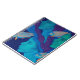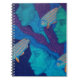 Notebook featuring surreal artwork titled "The Waiting". Three beautiful mermaids frozen, waiting for something that turns them back to life. Girls are covered by corals and seaweeds, bunch of golden fishes swimming between them. Dark blue water and remote fish silhouettes as a background. Color palette: navy blue, turquoise and dark purple. Underwater / nautical theme, contemporary fantasy art. Acrylic painting, 2015