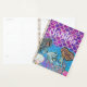 This glamourous custom planner features a little mermaid theme. An illustrated under the sea image is pictured in the bottom portion with two mermaids swimming under the water, among seashells and coral. The top portion features purple glitter mermaid tale scales. A sample name is printed near the bottom which you can personalise to include your own name or custom text.