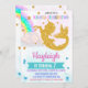 This brightfull and colorfull invitation features glitter gold Mermicorn which is Half Mermaid and half Unicorn, rainbow with cloud and under the sea scene.