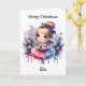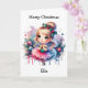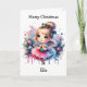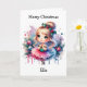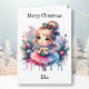 Personalised Christmas card for a little girl. Pretty watercolor little girl ballerina. Inside is a colouring page. All text on the card can be changed in the personalise area.