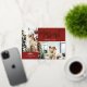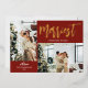 Christmas card features Merriest greeting in brush handwritten script in real foil. 2 photo on the back and 1 on the back of the card.