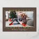 Send a bold, modern greeting with this foil holiday card featuring “Merriest Christmas” in elegant gold foil lettering over a neutral brown background. A clean double-line frame highlights your favorite photo for a polished, contemporary look. Personalize with your family name and year. The backside includes a simple two photo layout with a warm holiday message on crisp white.