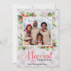 This elegant Christmas card features your photo and text surrounded by watercolor poinsettia flowers, holly, and greenery. The background has a soft grey plaid pattern to compliment the design. This photo Christmas card features calligraphy script font for a cheery modern Christmas greeting perfect for sending out to family, friends, and loved ones!