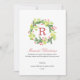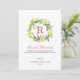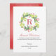 Design features a whimsical green and red watercolor wreath with family monogram in red, script and classic font.