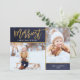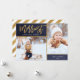 Affordable custom printed holiday photo cards with simple templates for customisation. This elegant design features a faux gold foil border around a 2 photo collage layout. Modern calligraphy script text says Merriest Christmas Wishes. Personalise it with your photos, family name, the year or other custom text. Please note that the faux gold foil is part of the printed design - the cards will not have real metallic foil. Reverse side has a faux foil stripe pattern or use the space for additional photos and text. Use the design tools to change the text fonts and colours, add more photos and create a unique one of a kind holiday photo card design.