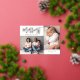 Affordable custom printed Christmas photo cards with simple templates for customisation. This elegant design features a real gold foil border around a 2 photo collage layout. Modern calligraphy script text says Merriest Christmas Wishes. Personalise it with your photos, family name, the year or other custom text. Use the design tools to change the text fonts and colours, add more photos and create a unique one of a kind Christmas photo card design.