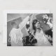 Chic holiday photo card for newlyweds features your favourite horizontal or landscape orientated wedding photo with "merrily ever after" overlaid in white script lettering. Personalise with your names and the year beneath. Cards reverse to a snowflake background with two additional square photos and an optional custom message to your loved ones.