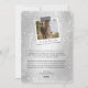 This modern and elegant holiday wedding announcement card features a 'Merrily Ever After' whimsical and unique hand drawn calligraphy script and a marriage knot with sparkling stars on a full bleed photo. The back of the card has a stylish faux silver foil image background with simple white snow dots pattern.