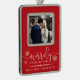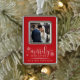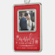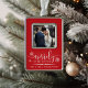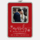 Personalise this festive red holiday ornament with your names for a chic way to commemorate your first married Christmas! Perfect for newlyweds, photo ornament features "merrily ever after" in a mix of white calligraphy script and block typefaces, accented with white snowflakes. Add a favourite wedding photo to the inset.