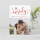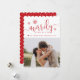 Share a favourite wedding photo this Christmas with our sweetly festive holiday card featuring "merrily ever after" in vibrant holiday red modern calligraphy script accented with snowflake illustrations. Personalise with your names and the year. Card reverses to a red and white winter snowfall pattern. We love this style with the scalloped paper shape for extra holiday charm!