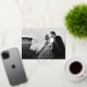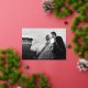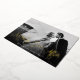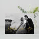 Chic holiday photo card for newlyweds features your favourite horizontal or landscape orientated wedding photo with "merrily ever after" overlaid in gold foil script lettering. Personalise with your names and the year beneath, and add a personal message to the back, along with two additional photos.
