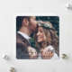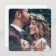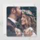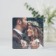 Send joyful holiday wishes as a new Mr. & Mrs! Celebrate your first married Christmas and share two of your favourite wedding pictures with a stylish square 2 photo "Merrily Ever After" holiday card. All text on this template is simple to personalise to include any wording, such as Merry and Married, Merrily Married, Happy Holidays, Seasons Greetings, New Year Cheers etc. Delete text on back if you prefer to hand write a note for a wedding thank you and Christmas card combined. (IMAGE PLACEMENT TIP: An easy way to centre a picture exactly how you want is to crop it before uploading to the Zazzle website.) The modern minimalist black and white design features trendy handwritten style script typography overlay and two square photos of your choice. Family and friends will love displaying this elegant customised card. Cheers to the newlyweds!