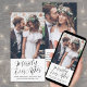 Send joyful holiday wishes as a new Mr. & Mrs! Celebrate your first married Christmas and share two of your favourite wedding pictures with a stylish vertical photo "Merrily Ever After" holiday card. All text on this template is simple to personalise to include any wording, such as Merry and Married, Merrily Married, Happy Holidays, Seasons Greetings, New Year Cheers etc. Delete text on back if you prefer to hand write a note for a wedding thank you and Christmas card combined. (IMAGE PLACEMENT TIP: An easy way to centre a picture exactly how you want is to crop it before uploading to the Zazzle website.) The modern minimalist black and white design features trendy handwritten style script typography and 2 vertical photos of your choice. Family and friends will love displaying this elegant customised card. Cheers to the newlyweds!