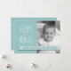 This two-sided card features a modern design of whimsical typography on a soft aqua background sprinkled with starry glints. On the right hand side, insert your favourite family photograph. A pale aqua ribbon spans the bottom of the card where you can customise with your personal holiday message and individual names. The reverse of the card is the same contemporary shade of aqua with soft, scattered sparkles - perfect for adding your own handwritten messages later on. Verse on the front reads "May your days be merry and bright".