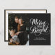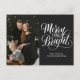 Merry and Bright Black Calligraphy Modern Photo Holiday Postcard