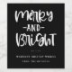 Festive Merry And Bright, holiday wine bottle labels. Design features, whimsical white holiday typography quote on black background. Two template text lines for your message and names.