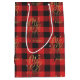 Merry and Bright Black Red Buffalo Plaid Rustic Medium Gift Bag