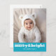 Merry and Bright Bold Modern Photo - Blue White Holiday Postcard