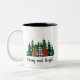 Personalise this Merry and Bright Buffalo Plaid Leopard Print Trees Two-Tone Coffee Mug by changing the words to fit your style.
