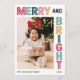 Spread holiday joy with this lovely Christmas greeting card, featuring a bold and colorful "Merry and Bright" typography.