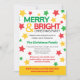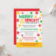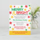Merry & Bright Christmas party star yellow red green invitation. Design by www.mylittleeden.com on zazzle