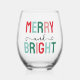 Merry and Bright! Festive holiday wine glass with shades of pink and green.