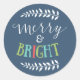 Celebrate the holiday season with beautiful, rustic Merry and Bright Christmas stickers. The holiday stickers feature a solid navy blue background, colourful typography, and rustic accents. Change the size and shape of the stickers to suit your needs. These stickers are great to use as envelope seals, Christmas party favours, and to use for everyday!