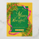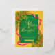 Merry and Bright Christmas Yellow Green Foil Holiday Postcard