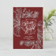 Merry and Bright Citrus Pine Tree Bough on Maroon Red Simple Holiday Card. Send holiday greetings to friends and family with this modern and elegant non-photo design festive, natural minimalist style cards! A beautiful floral foliage with citrus, cinnamon, Christmas bells, holly and pine tree leaf line art frame surrounding holiday greetings of " Merry and Bright " in stylish calligraphy. On the bottom, features your custom greeting message and family name in modern typography.