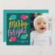 Merry and Bright Colourful Christmas Lights Photo Holiday Card