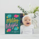 Spread holiday cheer in style with our unique holiday photo card. The front of the modern holiday card features "Merry + Bright" in gold, turquoise, pink hand-lettering against a teal background on the left. Cute Christmas light bulbs surround the text in hot pink and turquoise with gold-coloured bases. Personalise the front of the modern holiday card by adding your name, the year, and your favourite family photo. The back of the colourful holiday card features space for your custom message in white text and a turquoise background. Designed to coordinate with our Merry & Bright Christmas Lights holiday collection.